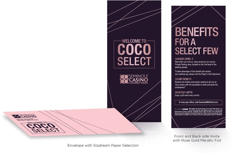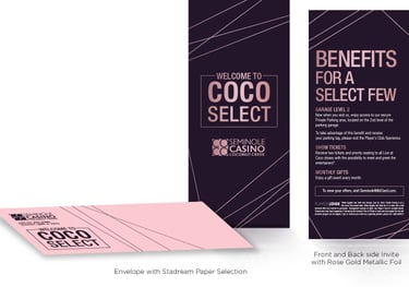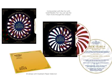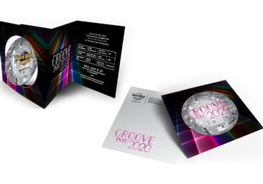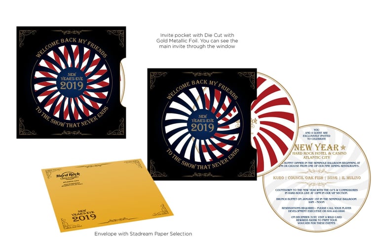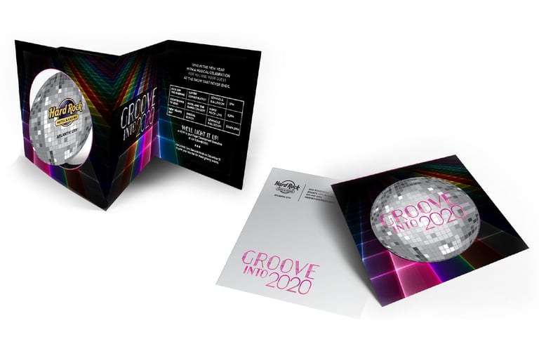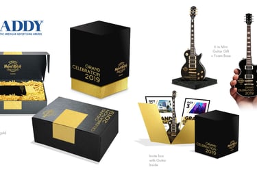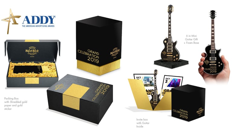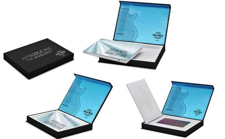 To elevate the premium feel, the invitation featured gold foil finishes, high-end paper, and a custom shipping box with refined details for an unforgettable presentation. The result was a sophisticated and interactive invitation that perfectly captured Hard Rock’s bold and elegant spirit.