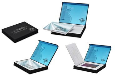 This exclusive VIP invitation was created for the Grand Celebration Weekend of Hard Rock Hotel & Casino Tampa. The concept was a luxury unboxing experience that revealed a surprise mini guitar collectible when the lid was lifted. As the box opened, the side panels elegantly unfolded to display the weekend’s event schedule.